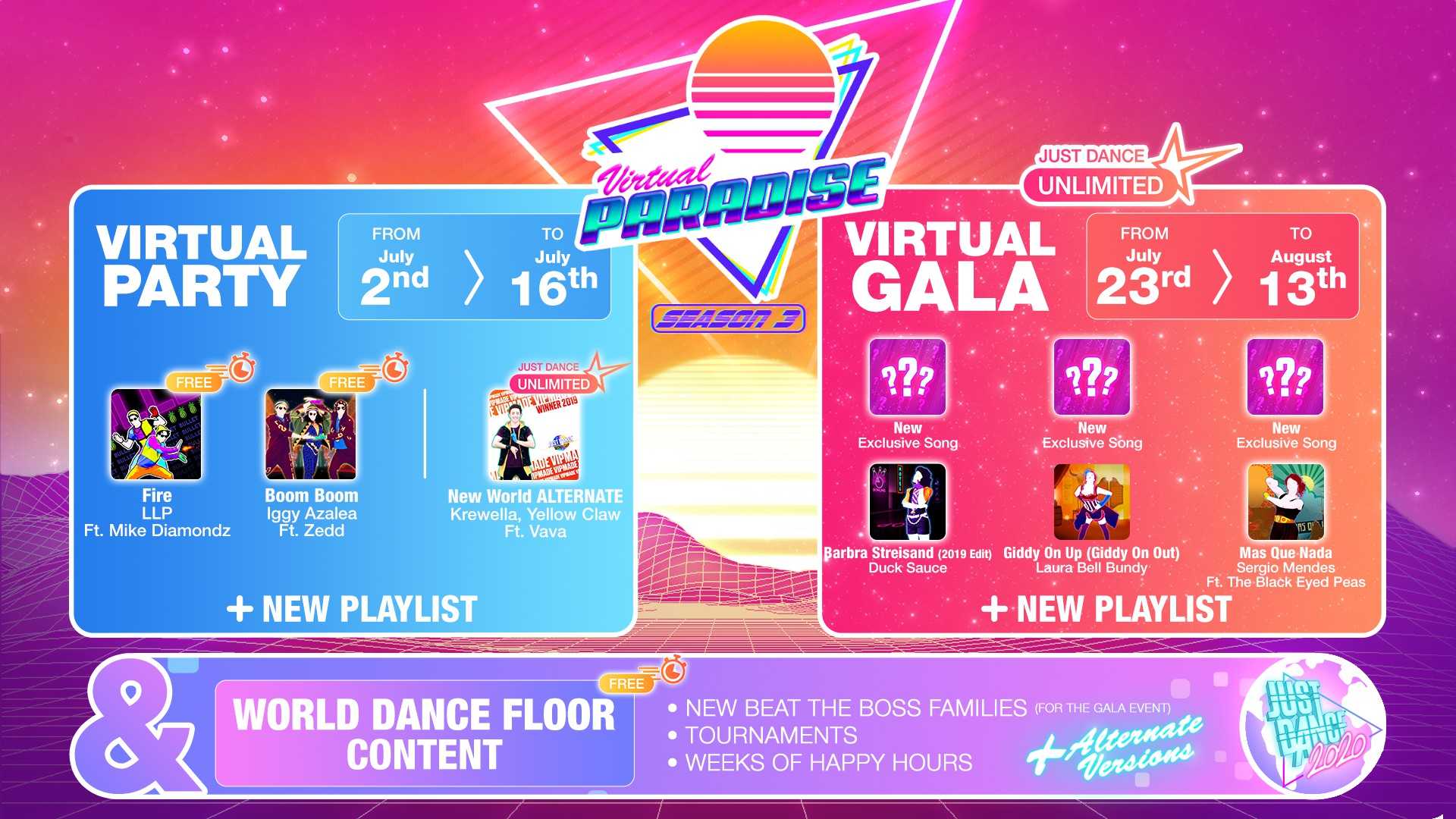 Just Dance 2020 is getting a new content update in the form of a new season entitled ‘Virtual Paradise’, which offers new playlists and online contests, as well as exclusive and iconic songs only accessible via Just Dance Unlimited, the dance-on-demand-streaming-service.