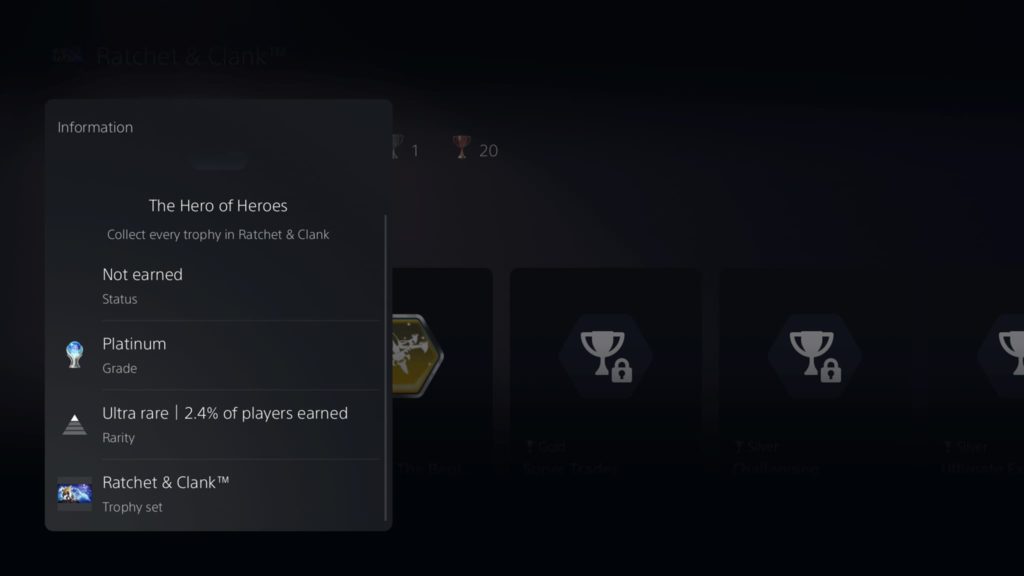 17.3%, or roughly around 1 in every 6 players, have achieved “The Masters of the Multiverse” Platinum Trophy for Ratchet & Clank: Rift Apart. When compared to its 2016 release, only a very small percentage (2.4%) of players have achieved “The Hero of Heroes” Platinum Trophy. It would be understandable for the 2016 title, which required finishing the game on its Challenge Mode (only 7.5%), but there’s no difficulty related trophy for this latest release.