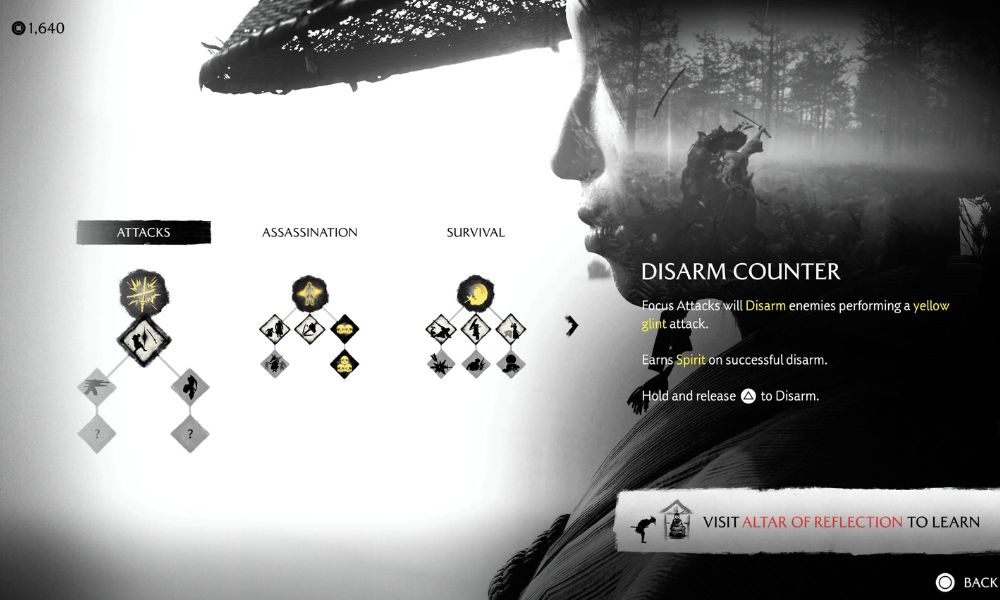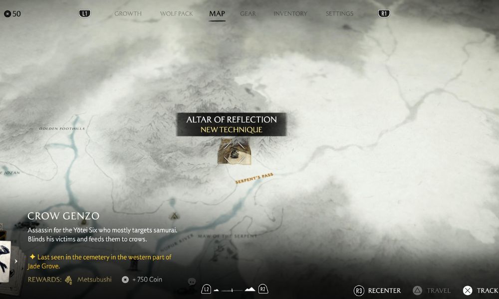 Crow Genzo is a straightforward Bounty as he isn’t too hard to find at the location he’s in. Another benefit to doing this Bounty first is that on the way to Jade Grove, where he was last sighted, there is another Altar of Reflection, as revealed by one of Isaburo’s maps. For your next Skill, go for the Disarm Counter, which lets your Focus Attack disarm enemies when they attempt to do the same to you. It should be helpful against Crow Genzo.