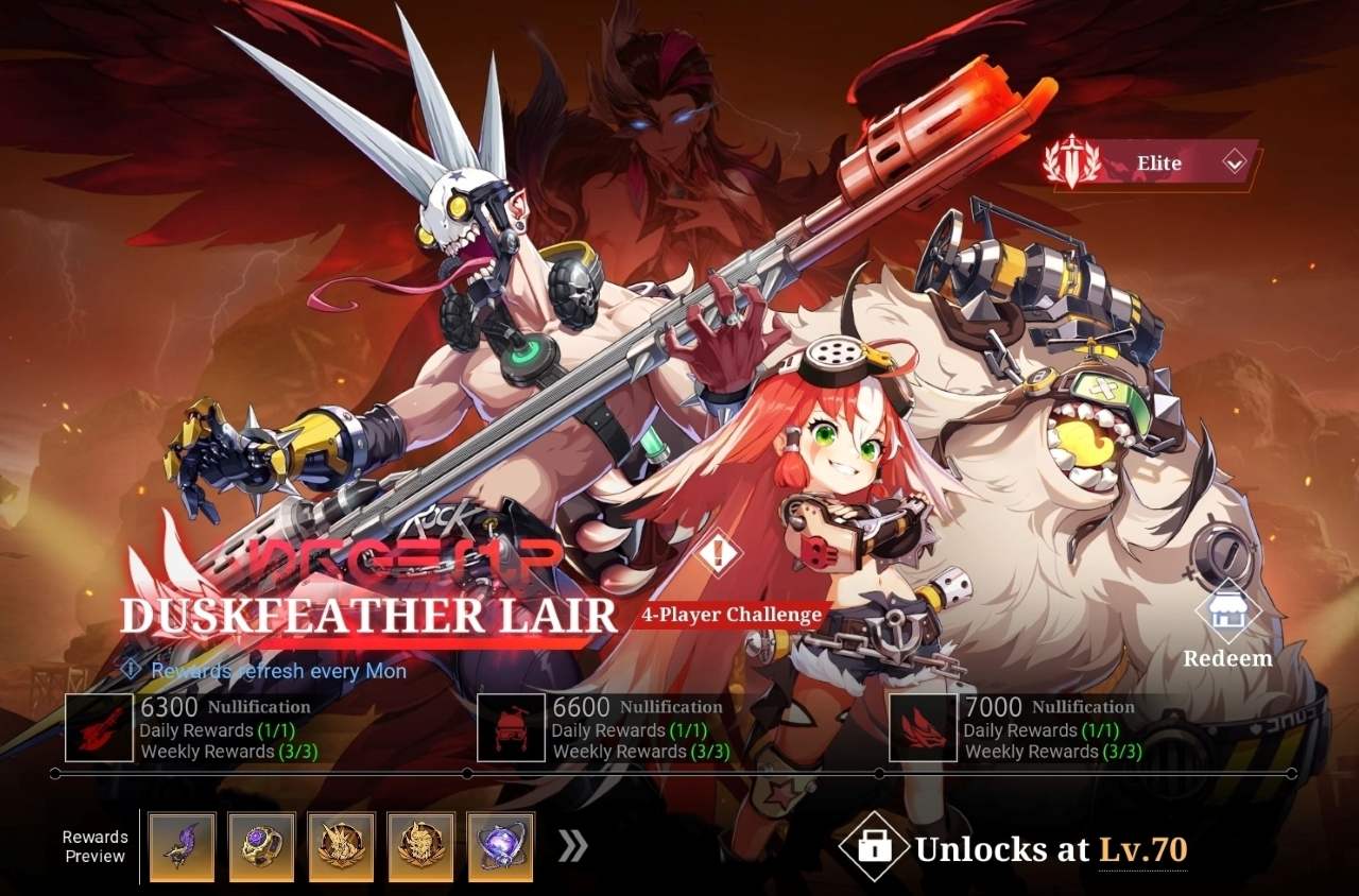- Crystal of Atlan Lv.70 cap unlocked with new main quest “Floating Settlement” and co-op dungeon “Duskfeather Lair.”