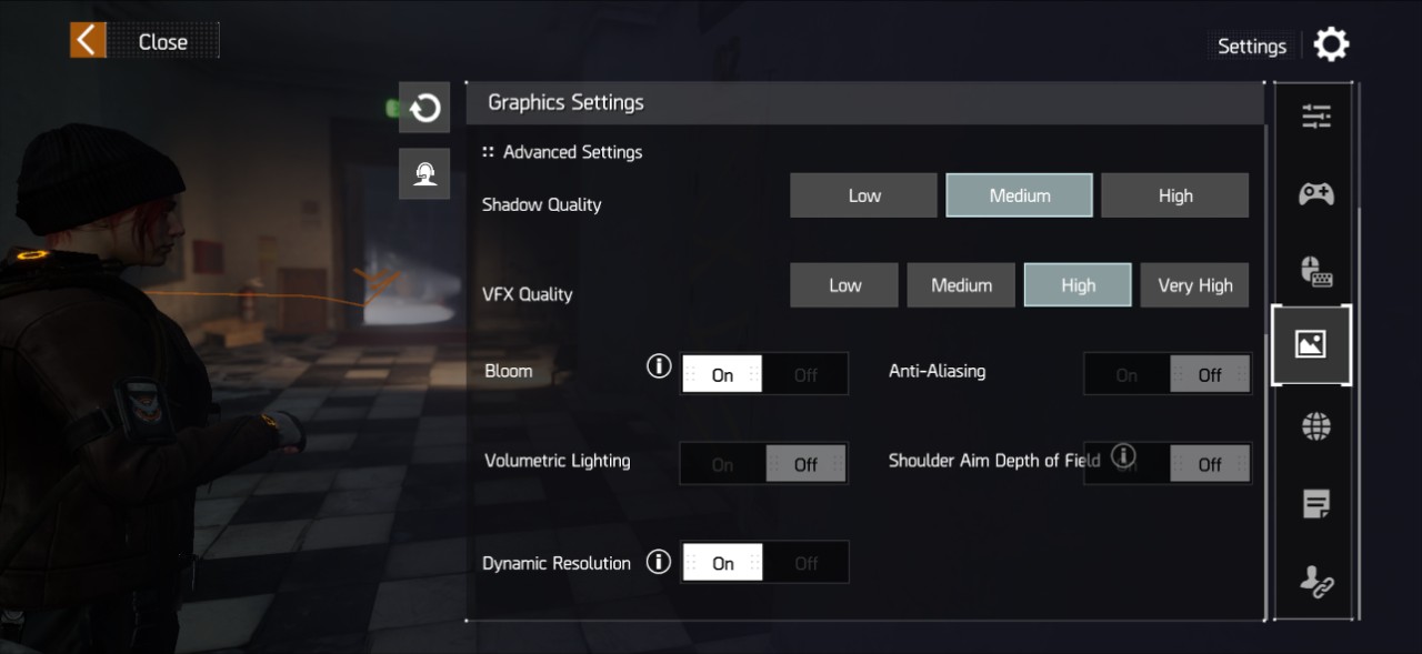 It has to be said that The Division Resurgence does resemble its namesake quite well. In fact, it is a pretty impressive port, all things considered. Playing on an iPhone 17 Pro, playing on high settings was no problem at all, and it looked good overall. There are some basic settings to toggle like texture and resolution and shadows, but there are also some advanced options like bloom, volumetric lighting, and dynamic resolution.